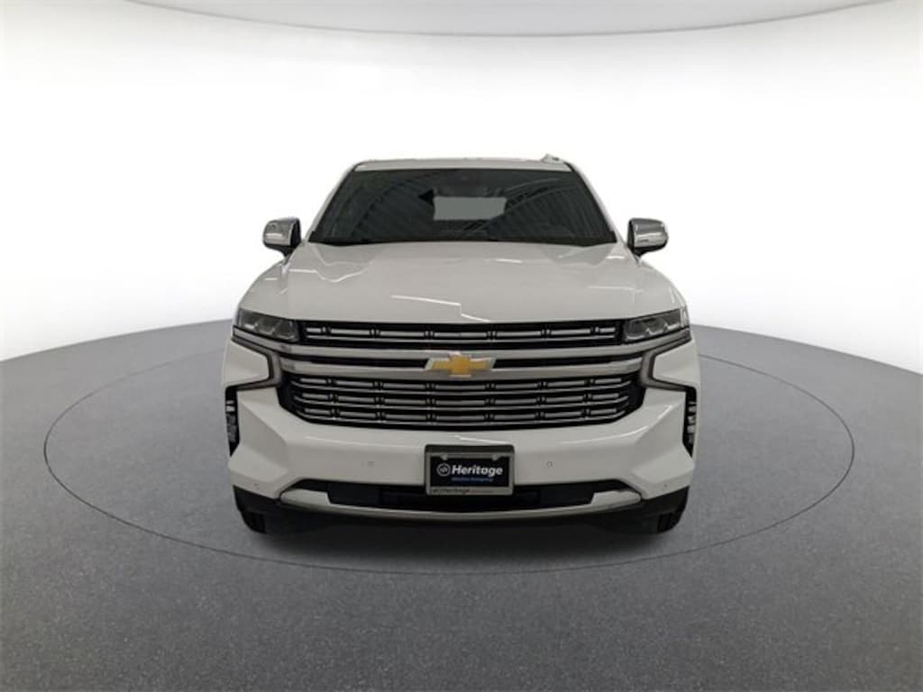 License Plate Front Mounting Package, Preferred Equipment Group 1LZ (1st & 2nd Row Color-Keyed Carpeted Floor Mats, 2-Speed Active Electronic AutoTrac Transfer Case, 3rd Row 60/40 Power-Folding Split-Bench, Auto-Dimming Inside Rear-View Mirror, Bose 10-Speaker Surround w/CenterPoint, Bright Front & Rear Door Sill Plates, Chrome Door Handles w/Body-Color Strip, Chrome Mirror Caps, Color-Keyed Carpeting Floor Covering, Driver & Front Outboard Passenger Airbags, Dual Exhaust System, Enhanced Driver Information Center, Floor Console, Hands-Free Rear Power Programmable Liftgate, Heated & Ventilated Driver & Front Passenger Seats, Heated 2nd Row Outboard Seats, Heated Driver & Front Passenger Seats, Heated Steering Wheel, Hill Descent Control, Infotainment Display, Lane Change Alert w/Side Blind Zone Alert, LED Daytime Running Lamps, Memory Settings, Outside Heated Power-Adjustable Mirrors, Power Release 2nd Row Bucket Seats, Power Tilt & Telescopic Steering Column, Rear Cross Traffic Alert, Remote Start, Safety Alert Seat, SiriusXM Radio w/360L, Universal Home Remote, Wireless Charging, and Wrapped Steering Wheel), 30 day Warranty, 10 Speakers, 20" x 9" Polished Aluminum Wheels, 3.23 Rear Axle Ratio, 3rd row seats: split-bench, 4-Wheel Disc Brakes, ABS brakes, Adaptive suspension, Air Conditioning, Alloy wheels, AM/FM radio: SiriusXM with 360L, Apple CarPlay/Android Auto, Auto High-beam Headlights, Auto-dimming door mirrors, Auto-dimming Rear-View mirror, Auto-leveling suspension, Automatic temperature control, Brake assist, Bumpers: body-color, Compass, CONTROL, Cruise Control, Delay-off headlights, Deleted 3 Years of Remote Access, Driver door bin, Driver vanity mirror, Dual front impact airbags, Dual front side impact airbags, Electrical Steering Column Lock (DISC), Electronic Stability Control, Emergency communication system: OnStar and Chevrolet connected services capable, Four wheel independent suspension, Front anti-roll bar, Front Bucket Seats, Front Center Armrest, Front reading lights, Fully automatic headlights, Garage door transmitter, Heated door mirrors, Heated front seats, Heated rear seats, Heated steering wheel, Illuminated entry, Low tire pressure warning, Magnetic Ride Control Suspension, Memory seat, Navigation System, Occupant sensing airbag, Outside temperature display, Overhead airbag, Overhead console, Panic alarm, Passenger door bin, Passenger vanity mirror, Perforated Leather Seating Surfaces, Power door mirrors, Power driver seat, Power Liftgate, Power passenger seat, Power steering, power windows, POWER WINDOWS, Premium audio system: Chevrolet Infotainment 3 Premium, Radio: Chevrolet Infotainment 3 Premium System, Rain sensing wipers, Rear air conditioning, Rear anti-roll bar, Rear reading lights, Rear window defroster, Rear window wiper, Remote keyless entry, Roof rack: rails only, Security system, Speed-sensing steering, Split folding rear seat, Spoiler, Steering wheel memory, Tachometer, Telescoping steering wheel, Tilt steering wheel, Traction control, Trip computer, Turn signal indicator mirrors, Variably intermittent wipers, Ventilated front seats, and Voltmeter.