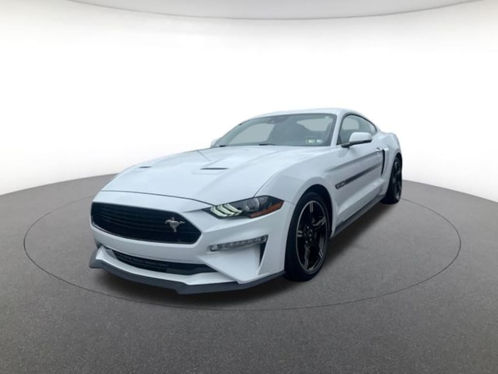 California Special Package (California Special Instrument Panel Applique Badge, California Special Script Rear Badging, Carbon Hex Aluminum Instrument Panel, Floor Mats w/Red Contrast Stitching, Leather-Trimmed Bucket Seats w/Miko Suede Inserts, Miko Suede Door Inserts w/Red Contrast Stitching, Pedestal Rear Spoiler, Unique Front Grilles w/Offset Tri-Bar Pony Logo, and Wheels: 19" x 8.5" Machined-Face Aluminum), Ford Safe & Smart Package (Adaptive Cruise Control and Voice-Activated Touch-Screen Navigation System), Equipment Group 401A (12" LCD Digital Instrument Cluster w/MyColor, Heated Steering Wheel, Integrated Turn Signals, Leather-Trimmed Bucket Seats w/Color Accents, and Memory Driver Seat, Mirrors & Ambient Lighting), Mustang GT Premium, 2D Coupe, 5.0L V8 Ti-VCT, 6-Speed Manual, Oxford White, Ebony With Red Stitching Leather, 3.55 Limited Slip Rear Axle, 4-Wheel Disc Brakes, 9 Speakers, ABS brakes, Active Valve Performance Exhaust, Air Conditioning, Alloy wheels, AM/FM radio: SiriusXM, AM/FM Stereo, Auto High-beam Headlights, Auto-dimming Rear-View mirror, Automatic temperature control, Black GT, 5.0 & Pony Badges, Brake assist, Bumpers: body-color, Climate Controlled Heated/Cooled Front Seats, Compass, Delay-off headlights, Driver door bin, Driver vanity mirror, Dual front impact airbags, Dual front side impact airbags, Ebony Mid Body Side Stripe, Electronic Stability Control, Emergency communication system: 911 Assist, Exterior Parking Camera Rear, Four wheel independent suspension, Front anti-roll bar, Front Bucket Seats, Front Center Armrest, Front dual zone A/C, Front fog lights, Front reading lights, Fully automatic headlights, Garage door transmitter, Heated door mirrors, Heated front seats, Illuminated entry, Knee airbag, Leather Shift Knob, Leather-Trimmed Bucket Seats, Linked Graphite Aluminum Instrument Panel, Low tire pressure warning, Occupant sensing airbag, Outside temperature display, Overhead airbag, Overhead console, Panic alarm, Passenger door bin, Passenger vanity mirror, Power door mirrors, Power driver seat, Power passenger seat, Power steering, Power Windows, Premium Floor Mats w/Accent Stitch, Radio data system, Rain sensing wipers, Rear anti-roll bar, Rear window defroster, Remote keyless entry, Security system, SiriusXM Radio, Speed control, Speed-sensing steering, Speed-Sensitive Wipers, Split folding rear seat, Spoiler, Steering wheel mounted audio controls, SYNC 3 Communications & Entertainment System, Tachometer, Telescoping steering wheel, Tilt steering wheel, Traction control, Trip computer, Variably intermittent wipers, Ventilated front seats, Voltmeter, and Wheels: 18" x 8" Machi