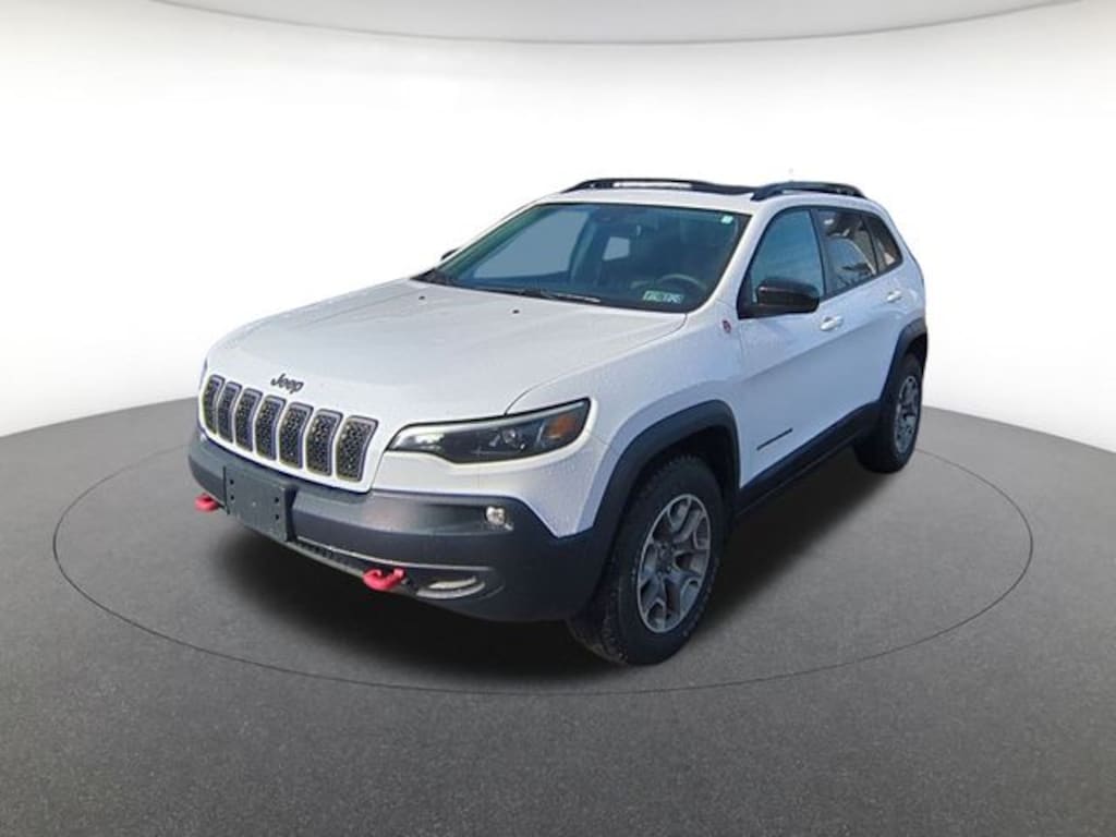 Quick Order Package 27E, Sun, Sound & Nav Group (DISC) (1-Year SiriusXM Guardian Trial, 4G LTE Wi-Fi Hot Spot, 5-Year SiriusXM Traffic Service, 5-Year SiriusXM Travel Link Service, 8.4" Touchscreen Display, Apple CarPlay, For Details, Visit DriveUconnect.com, For More Info, Call 800-643-2112, Google Android Auto, GPS Antenna Input, GPS Navigation, HD Radio, Integrated Voice Command w/Bluetooth, Off-Road Info Pages, Power Front/Fixed Rear Full Sunroof, Premium Alpine Speaker System, Radio: Uconnect 4C Nav w/8.4" Display, SiriusXM Radio Service, SiriusXM Satellite Radio, SiriusXM Traffic Plus, SiriusXM Travel Link, and USB Host Flip), Trailer Tow Group (7 & 4 Pin Wiring Harness, Class III Receiver Hitch, and Trailer Tow Wiring Harness), Cherokee Trailhawk, 4D Sport Utility, 3.2L V6, 9-Speed 948TE Automatic, 4WD, Bright White Clearcoat, Black Cloth, 3.517 Final Drive Ratio, 4-Wheel Disc Brakes, 6 Speakers, ABS brakes, Air Conditioning, Alloy wheels, AM/FM radio: SiriusXM, Anti-whiplash front head restraints, Apple CarPlay/Android Auto, Automatic temperature control, Brake assist, Cloth/Premium Vinyl Bucket Seats, Compass, Delay-off headlights, Driver door bin, Driver vanity mirror, Dual front impact airbags, Dual front side impact airbags, Electronic Stability Control, Four wheel independent suspension, Front anti-roll bar, Front Bucket Seats, Front Center Armrest, Front dual zone A/C, Front fog lights, Front reading lights, Fully automatic headlights, Heated door mirrors, Heated front seats, Heated steering wheel, Illuminated entry, K-Black Door Trim Panel Appliques, K-Black Interior Accents, Knee airbag, Leather Shift Knob, Low tire pressure warning, Occupant sensing airbag, Off Road Suspension, Outside temperature display, Overhead airbag, Overhead console, Panic alarm, ParkView Rear Back-Up Camera, Passenger door bin, Passenger vanity mirror, Power door mirrors, Power driver seat, Power steering, Power Windows, Radio data system, Radio: Uconnect 4 w/8.4" Display, Rain sensing wipers, Rear anti-roll bar, Rear reading lights, Rear seat center armrest, Rear side impact airbag, Rear window defroster, Rear window wiper, Remote keyless entry, Roof rack: rails only, Speed control, Speed-sensing steering, Split folding rear seat, Spoiler, Steering wheel mounted audio controls, Tachometer, Telescoping steering wheel, Tilt steering wheel, Traction control, Trip computer, Turn signal indicator mirrors, Variably intermittent wipers, Voltmeter, and Wheels: 17" x 7.5" Painted Diamond Cut AluminuM.
